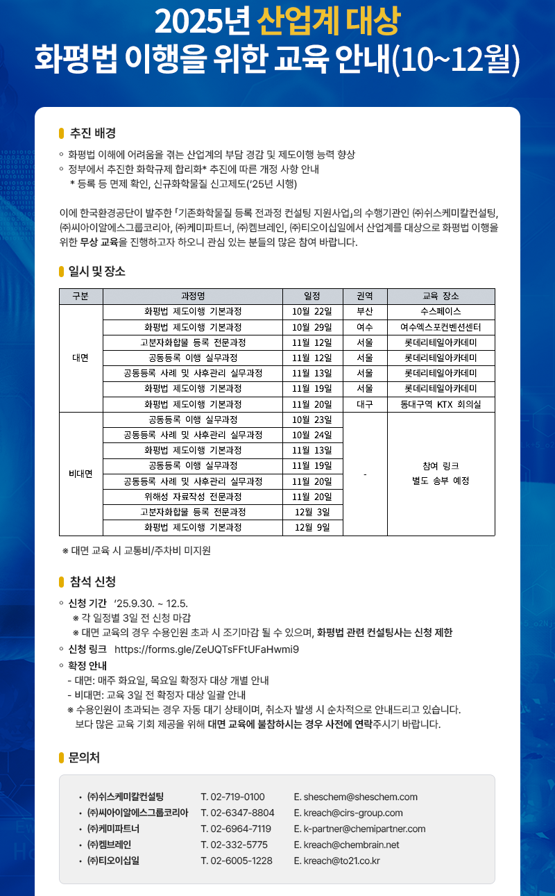 [화평법] 2025년 산업계 대상 화평법 이행 교육 안내 (10~12월)