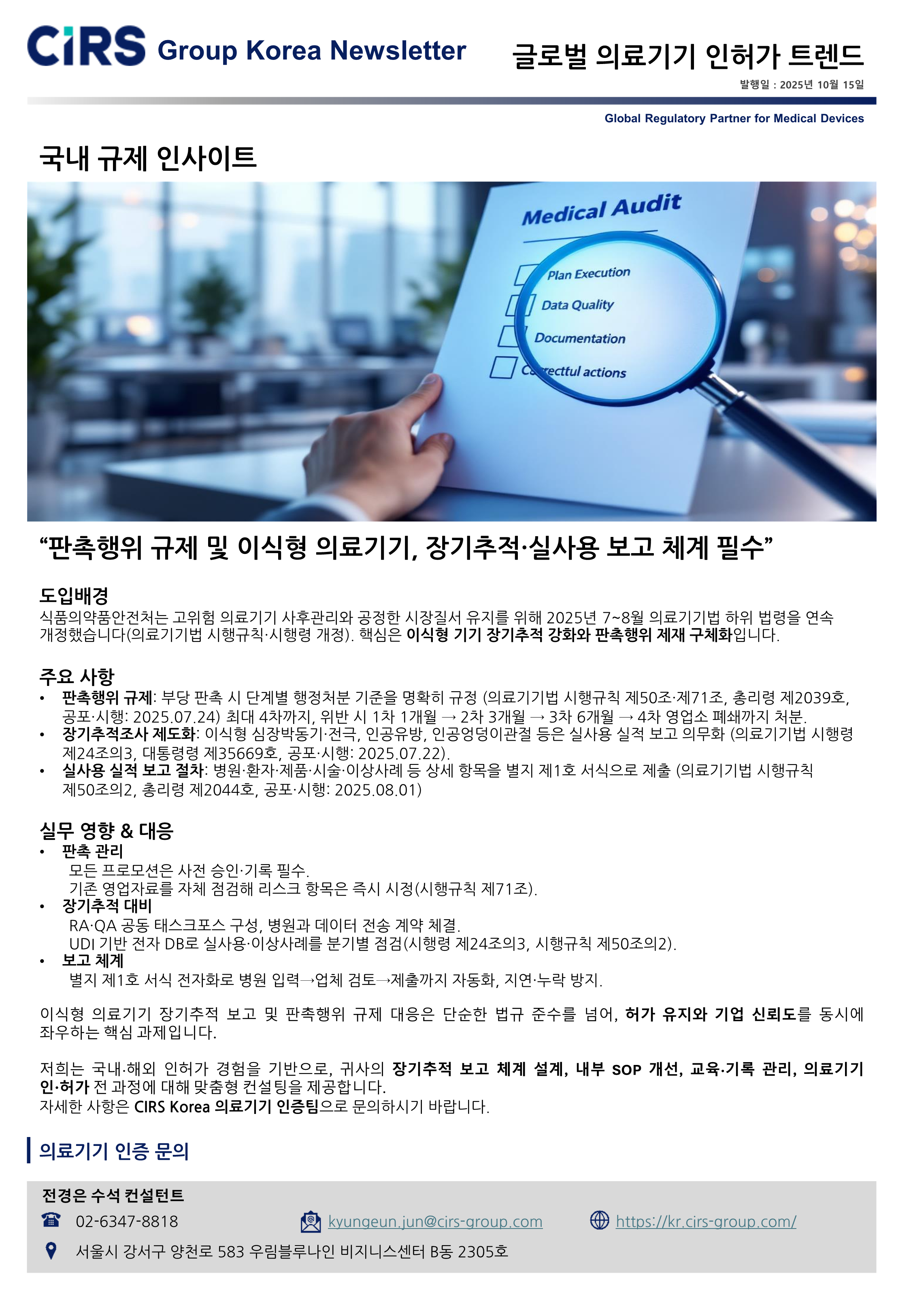 [의료기기] 2025년 10월호_AI Act·이식형 장기추적·NMPA 자가검사 – 글로벌 의료기기 규제 핵심 업데이트