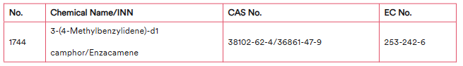 경과 규정: 4-메틸벤질리덴 캠퍼를 함유하는 화장품은 2026년 7월 15일부터 잉글랜드, 웨일스, 스코틀랜드 시장에 출시할 수 없으며, 2027년 1월 15일부터는 해당 지역에서 판매할 수 없습니다.